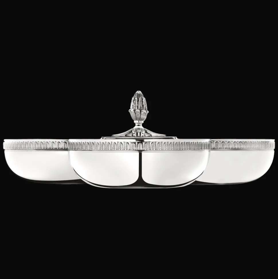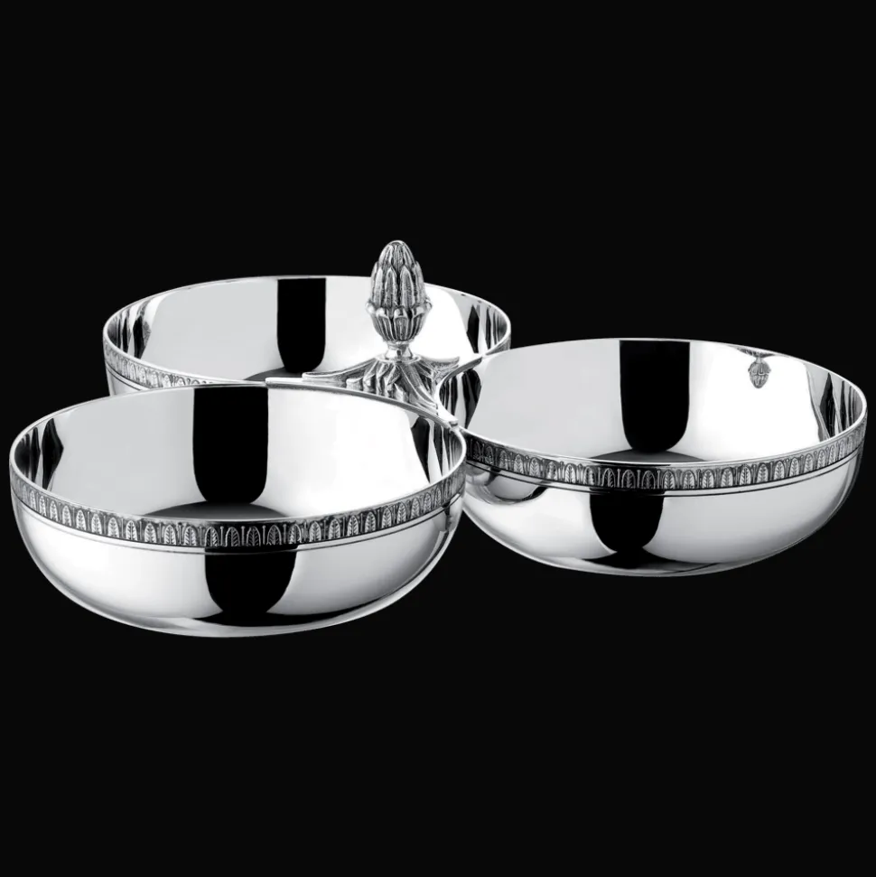 Service 3 coupelles en métal argenté. Accessoire de table indispensable pour cocktails et apéritifs. Le décor reprend les codes stylistiques de la collection.
