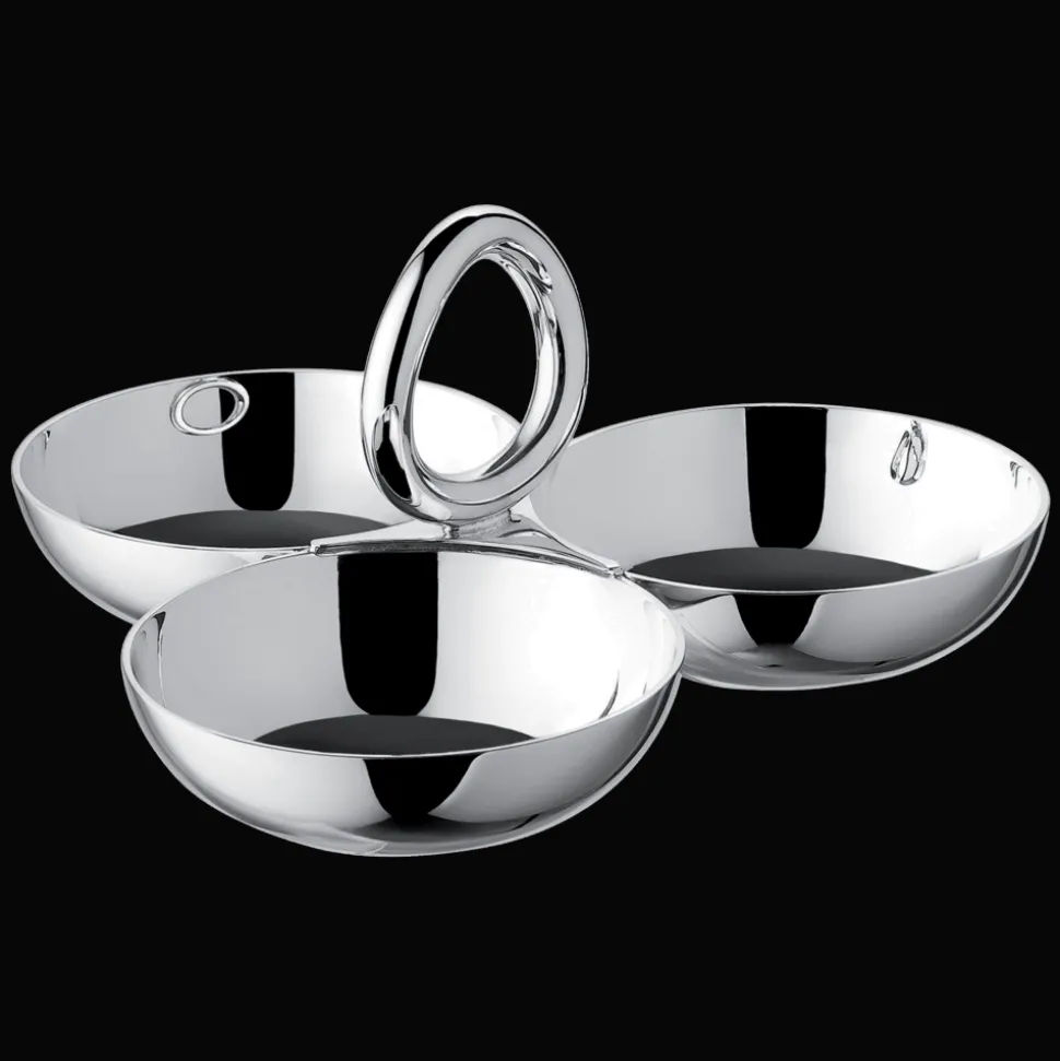 Service 3 coupelles en métal argenté. Accessoire de table indispensable pour cocktails et apéritifs. Le décor reprend les codes stylistiques de la collection.