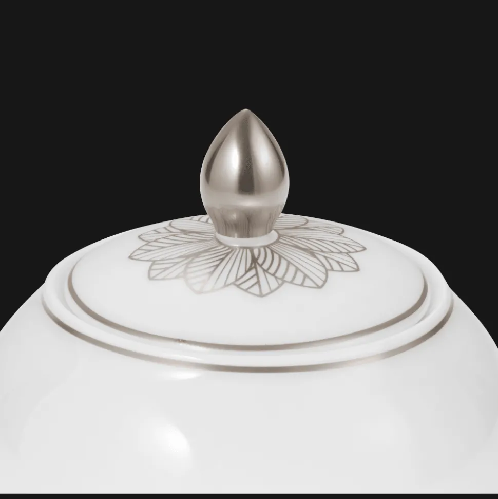 Ajoutez raffinement et élégance à votre service à thé avec ce sucrier en porcelaine de Limoges et platine. La ligne Malmaison Impériale reprend les codes emblématiques du modèle Malmaison et les ré-interprète dans une version moderne.