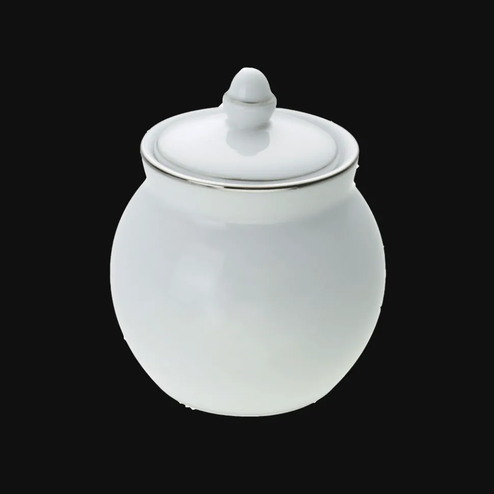 Sucrier en porcelaine de Limoges finition platine pour une table élégante et signée. Le décor réinterprète les codes identitaires de la collection.