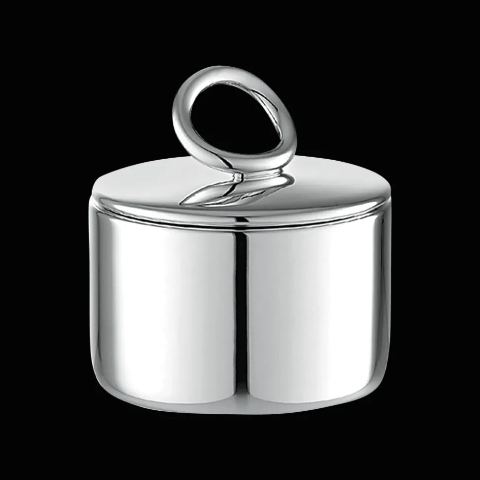 Sucrier en métal argenté. A assortir avec les autres pièces du service à thé ou café pour une table de petit-déjeuner élégante et signée. Le décor reprend les codes stylistiques de la collection.