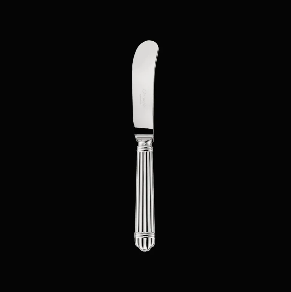 Tartineur à beurre en métal argenté, idéal pour le petit-déjeuner.