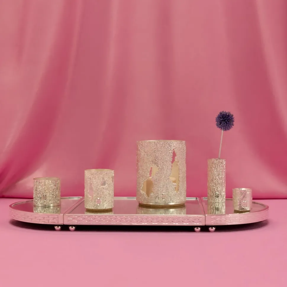 Le Surtout rassemble un bougeoir, un petit et un grand photophore, un petit vase, un soliflore et deux plateaux de formes différentes. Les motifs des lumières et des vases sont inspirés de la nature : écorces de bouleau, de pin et de châtaignier. Le Surtout apportera lumière et fraîcheur lors de célébrations, mais pas seulement. Il deviendra la pièce maîtresse de votre maison tout au long de l’année.